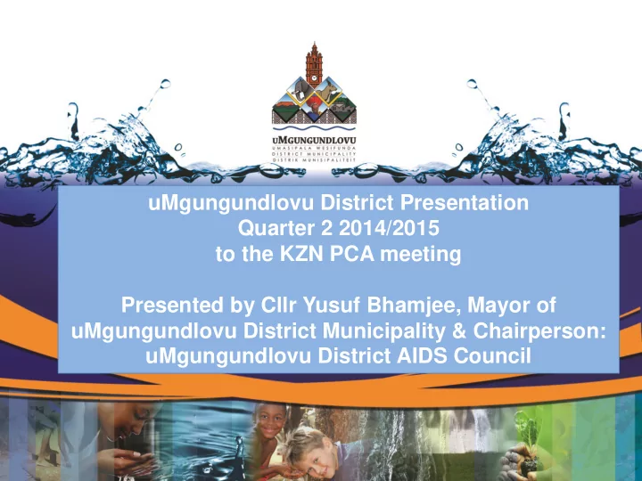 uMgungundlovu District Presentation Quarter 2 2014/2015 to the KZN PCA meeting Presented by Cllr Yusuf Bhamjee, Mayor of uMgungundlovu District Municipality & Chairperson: uMgungundlovu District AIDS Council