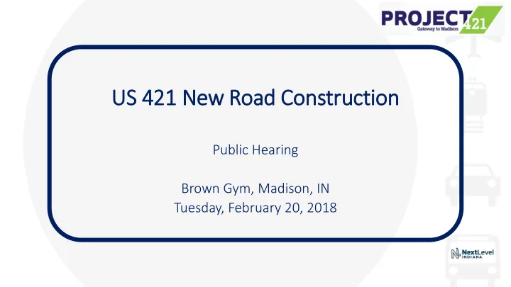 US 421 New Road Construction Public Hearing Brown Gym, Madison, IN Tuesday, February 20, 2018