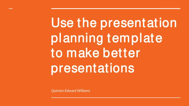 Use the present ntation on planni nning ng tem emplate e to make e bet etter er present ntations ons Quinten Edward Williams