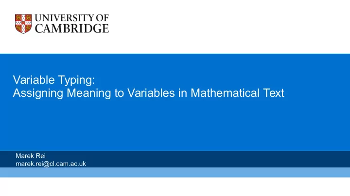 Variable Typing: Assigning Meaning to Variables in Mathematical Text Marek Rei marek.rei@cl.cam.ac.uk