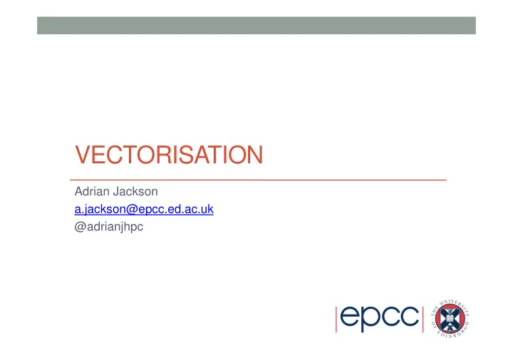 VECTORISATION Adrian Jackson a.jackson@epcc.ed.ac.uk @adrianjhpc