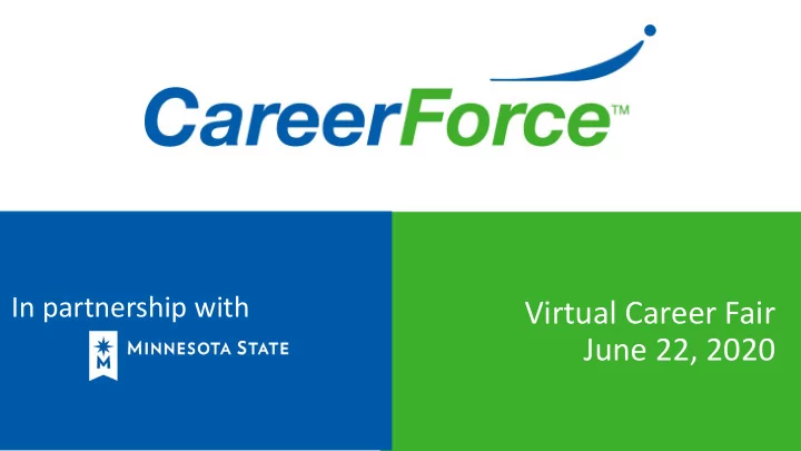 June 22 nd 2020 Today’s career fair has been brought to you in partnership with: Minnesota State www.minnstate.edu