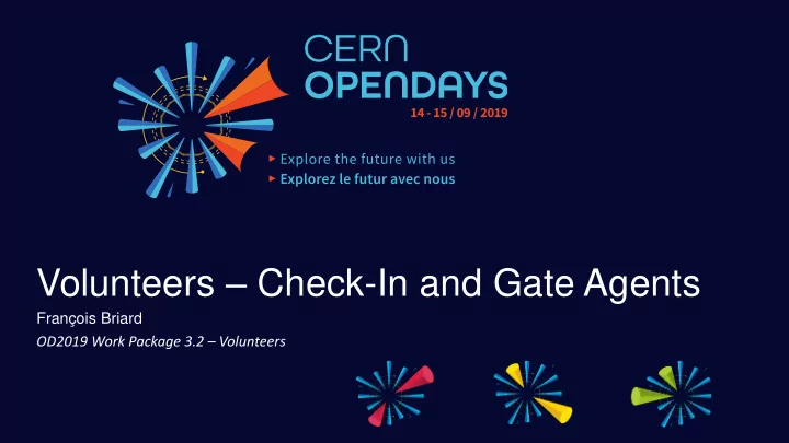 Volunteers – Check-In and Gate Agents François Briard OD2019 Work Package 3.2 – Volunteers