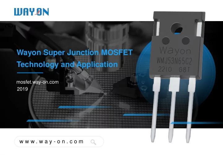 Wayon Super Junction MOSFET Technology and Application mosfet.way-on.com 2019 w w w . w a y - o n . c o m