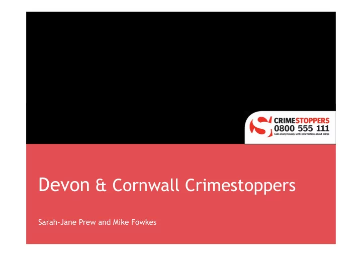 Devon & Cornwall Crimestoppers www.crimestoppers-uk.org