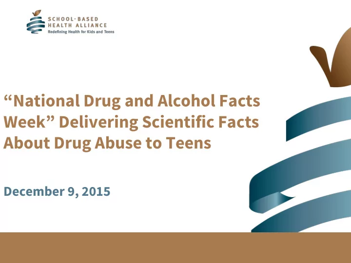 “National Drug and Alcohol Facts Week” Delivering Scientific Facts About Drug Abuse to Teens December 9, 2015