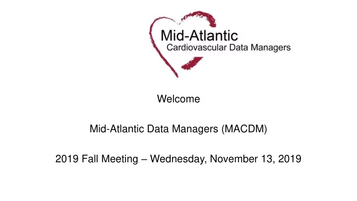 Welcome Mid-Atlantic Data Managers (MACDM) 2019 Fall Meeting – Wednesday, November 13, 2019