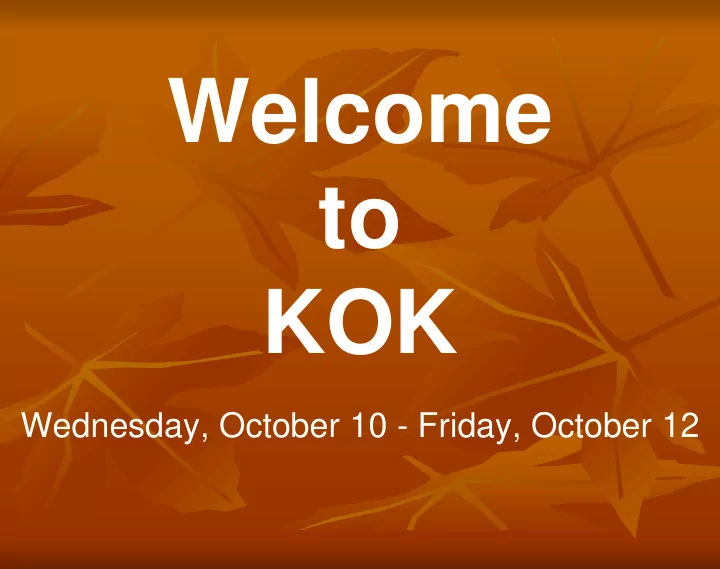 Welcome to KOK Wednesday, October 10 - Friday, October 12