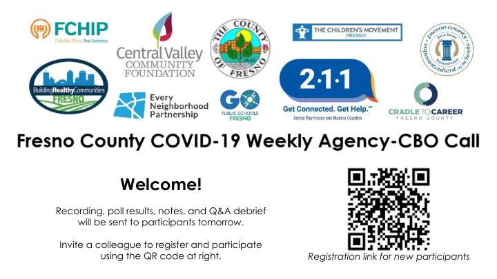Welcome! Recording, poll results, notes, and Q&A debrief will be sent to participants tomorrow. Invite a colleague to register and participate using the QR code at right. Registration link for new participants