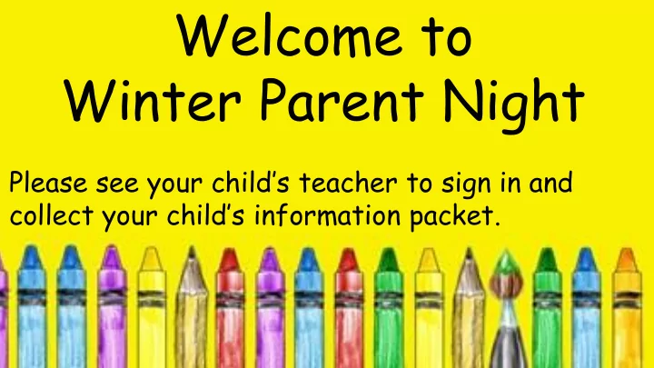 Welcome to Winter Parent Night Please see your child’s teacher to sign in and collect your child’s information packet.