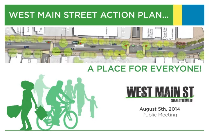 WEST MAIN STREET ACTION PLAN... A PLACE FOR EVERYONE! August 5th, 2014 Public Meeting