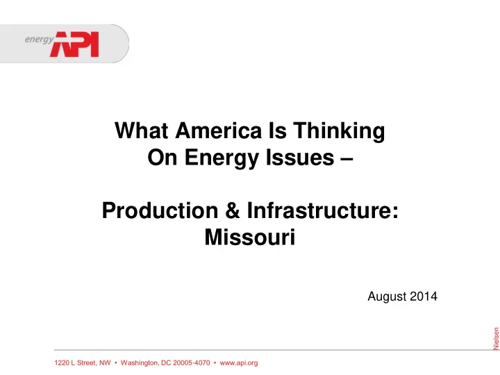 What America Is Thinking On Energy Issues – Production & Infrastructure: Missouri August 2014 Nielsen 1220 L Street, NW • Washington, DC 20005 - 4070 • www.api.org