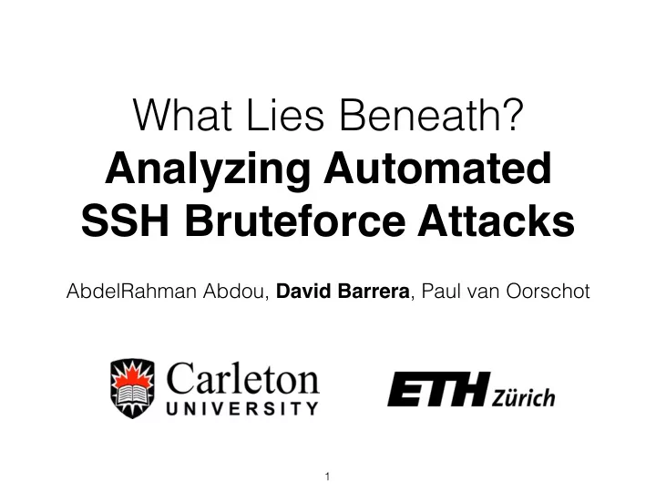 What Lies Beneath? Analyzing Automated SSH Bruteforce Attacks AbdelRahman Abdou, David Barrera , Paul van Oorschot 1