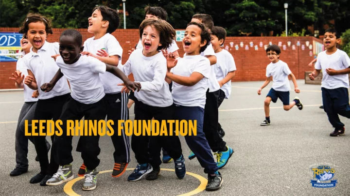 WHO ARE THE LEEDS RHINOS FOUNDATION? - Founded in 2005 - Registered Charity of Leeds Rhinos RLFC - Financially and structurally independent with a turnover of over £1.2m. - More than 40,000 children, young people and adults engaged each year - A workforce of over 40 professionals including educators, coaches, health specialists, support staff and volunteers - Recognised brand with Community Focus
