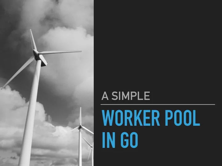 A SIMPLE WORKER POOL IN GO …CONCURRENCY IS THE COMPOSITION OF INDEPENDENTLY EXECUTING PROCESSES, WHILE PARALLELISM IS THE SIMULTANEOUS EXECUTION OF COMPUTATIONS. Rob Pike